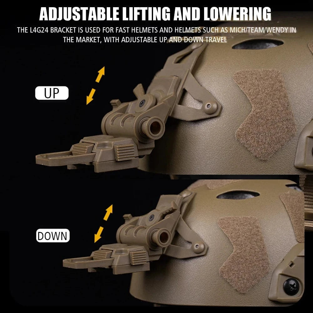 La monture NVG L4G69 KOLINLOV est conçue pour offrir une fixation fiable et stable de votre monoculaire ou jumelle de vision nocturne sur casque tactique.