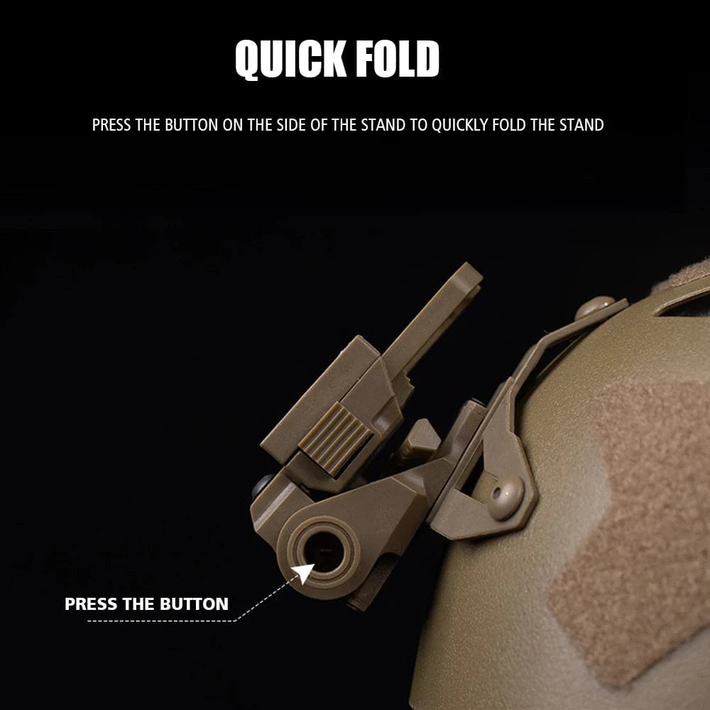 • Installation facile : montage rapide sur la plupart des casques tactiques équipés d’un support NVG